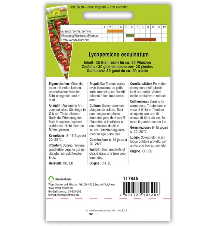 Cherrytomate mit vielen kleinen aromatischen Früchten. Sehr ertragreich und robust.