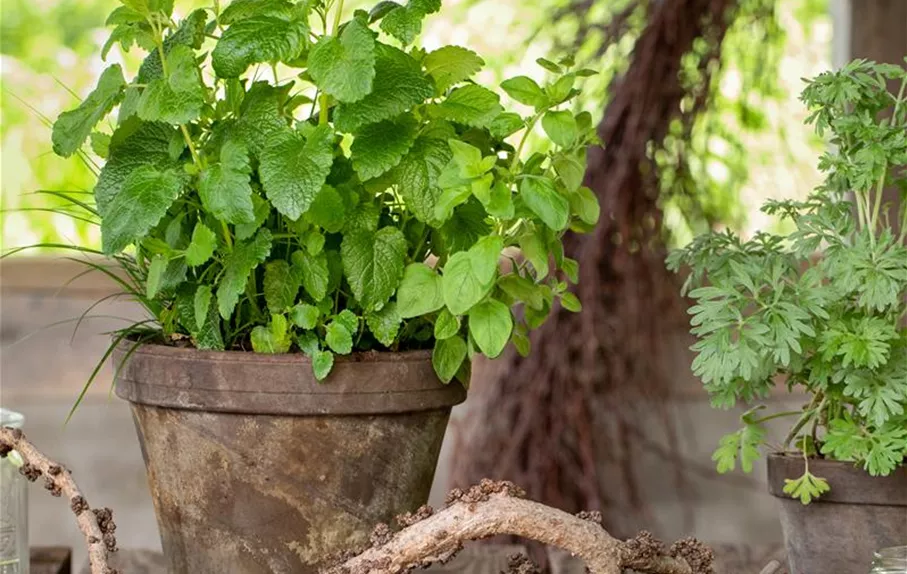 Dekoration mit Kräutertopf