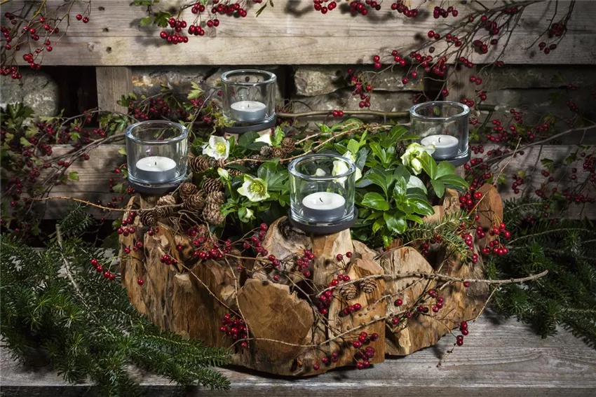Helleborus niger Kein Problem, auch nicht bei wenig Zeit. Dann greift man zur klassischen Variante. Wenn Sie das Grün aus dem eigenen Garten holen können – umso besser! Selberbinden macht wenig Arbeit. Die Tannenzweige zuschneiden, auf einen handelsüblichen Rohling legen und mit Draht befestigen. Vier Kerzen hinzufügen ist auch schnell getan. Schon bei deren Farbe beginnt Ihr Kranz jetzt individuell zu werden. Erst recht macht die Dekoration die persönliche Note aus. Die Gewächse mit den leuchtenden Beeren haben nun ihren großen Auftritt, zum Beispiel der Feuerdorn. Schon ein paar kleine Zweige peppen den Kranz auf. Efeu ist auch nicht nur zum Verschönern von Fassaden gut. Als Kranzschmuck findet er eine weitere Aufgabe. Weihnachtskugeln, passend zu den Kerzen, machen die Sache schon rund. Figuren aller Art steckt man je nach Geschmack noch ins frische Grün. Immer beliebter werden Bänder aus edlen Stoffen oder sogar Perlen, die man leger-kunstvoll hinzufügt. Sie haben noch Früchte von Ihrem Nussbaum übrig? Legen Sie sie in die leere Mitte, zusammen mit Orangen oder Äpfeln.
