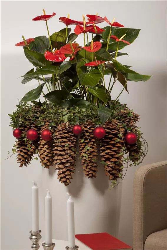 Anthurium x andreanum Doch man kann einen stattlichen Adventskranz auch mal aus ganz anderen botanischen Mitteln herstellen. Wer Salbei im Garten hat, kennt den ätherischen Duft der Heilpflanze. Die Blätter mit der filzigen Oberfläche geizen mit ihrem Aroma auch nicht, wenn sie getrocknet sind. Um den Rohling werden sie in frischem Zustand gewunden, am besten in üppig zusammengesteckten Bündeln. Dazu passen kleine Holztiere, Nüsse und natürlich alle Beerenarten. Der Rosenbesitzer kann auch zu seinen herrlichen Hagebutten greifen. Eine zweite Pflanze präsentiert sich nicht nur fürs Auge, sondern auch für die Nase. Die Zweige des Eukalyptus verhelfen zu einem außergewöhnlichen Adventskranz. Sie sind etwas widerspenstig veranlagt, und es ist keine Schande, sich bei der Ummantelung tatkräftige Hilfe zu holen. Das Ergebnis überzeugt mit seinem außergewöhnlichen Anblick und als betörender Duftspender