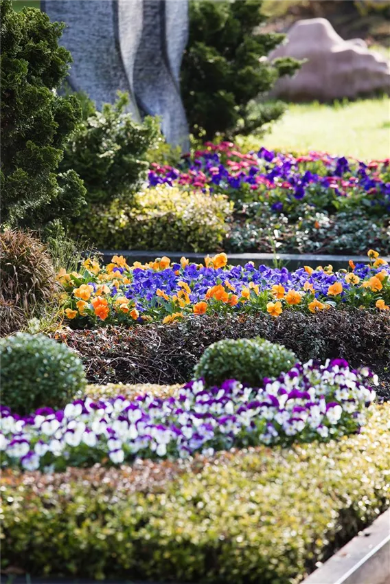 Grabbepflanzung Ein Grab wird meist jahreszeitlich bepflanzt. Im Frühjahr beginnen die Stiefmütterchen den Reigen, wobei auch viele andere Frühblüher möglich sind. Auch Vergissmeinnicht und Veilchen sowie Maiglöckchen sind hier oft anzutreffen, die dann allerdings dauerhaft stehen bleiben.