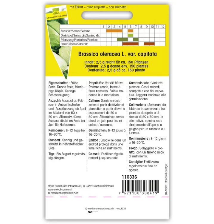 Frühe Sorte. Runde feste, feinrippige Köpfe. Geringe Schossneigung.
