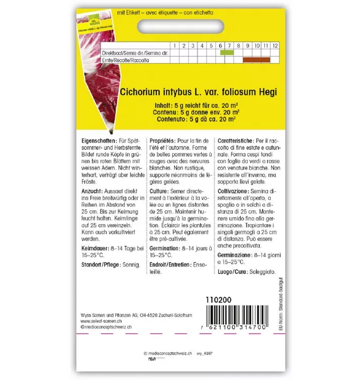 Für Spätsommer- und Herbsternte. Bildet runde Köpfe in grünen bis roter Blättern mit weissen Adern. Nicht winterhart, verträgt aber leichte Fröste.