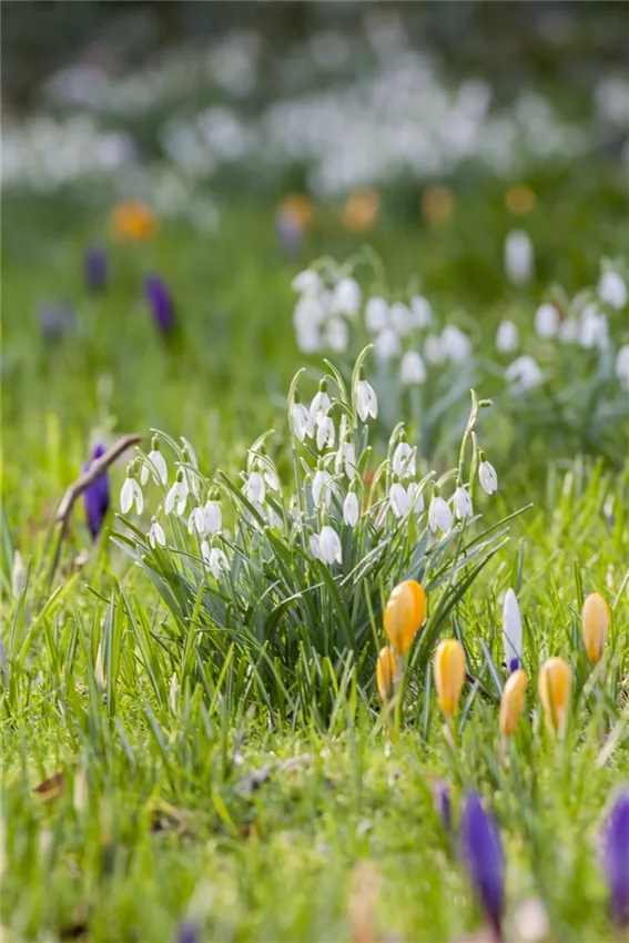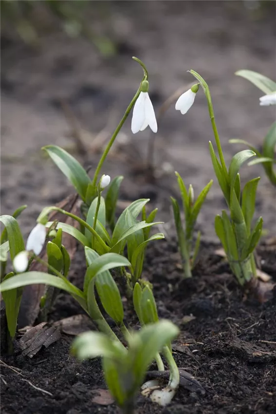 Galanthus nivalis Schneeglöckchen begrüßen als einer der ersten Frühblüher den Frühling. Ihre reinweißen Blütenköpfe recken sie durch noch so schwere Schneedecken empor. Schneeglöckchen pflanzen Sie im August – dann ist Ihnen der Frühlingsbote im Garten sicher.