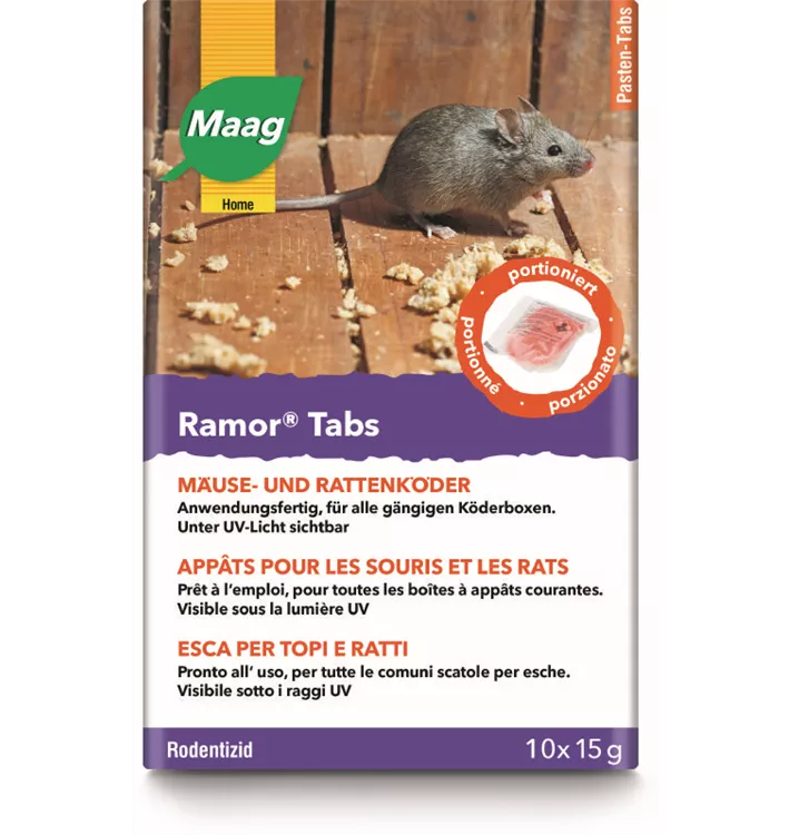 Gebrauchsfertige Pasten-Tabs zum Nachfüllen und Platzieren gegen Mäuse in und um Gebäude.