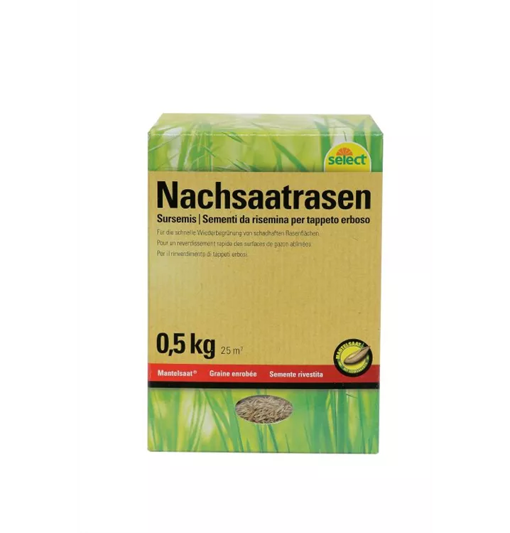 Nachsaatrasen mit Ummantelung für die erfolgreiche Nachsaat von Rasenflächen und um Lücken im Rasen zu schliessen. Durch die Mantelsaat wird der Wasserverbrauch reduziert. Sichere Nachsaat.