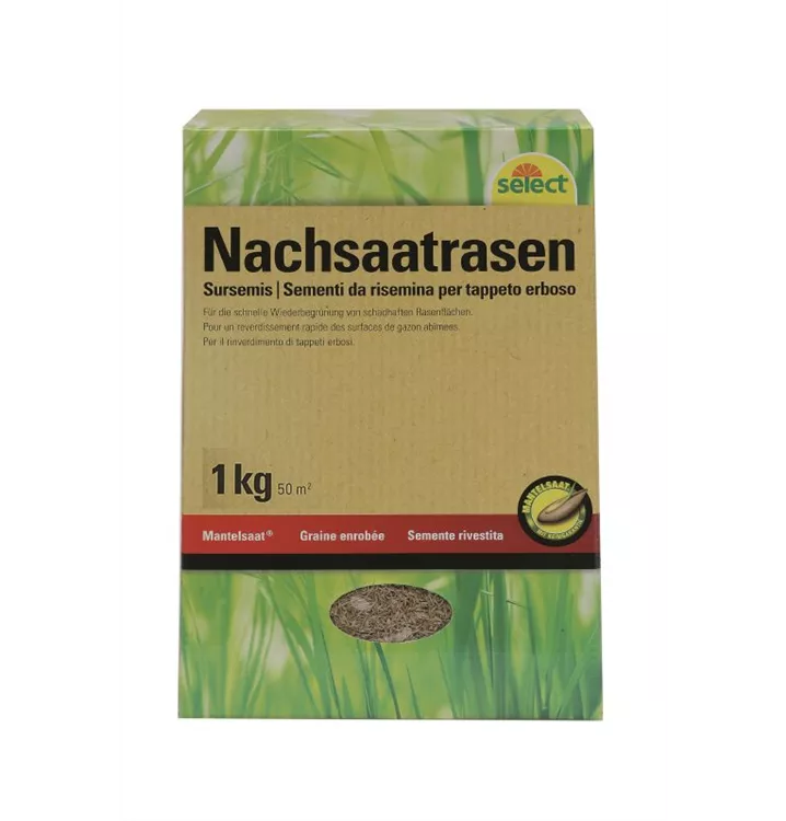 Nachsaatrasen mit Ummantelung für die erfolgreiche Nachsaat von Rasenflächen und um Lücken im Rasen zu schliessen. Durch die Mantelsaat wird der Wasserverbrauch reduziert. Sichere Nachsaat.