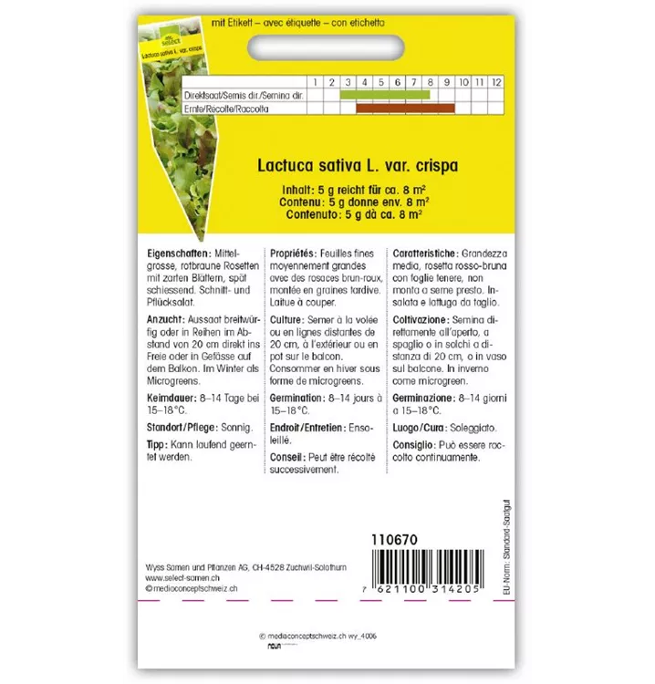 Mittelgrosse, rotbraune Rosetten mit zarten Blättern, spät schiessend. Wächst nach und kann laufend gepflückt werden.